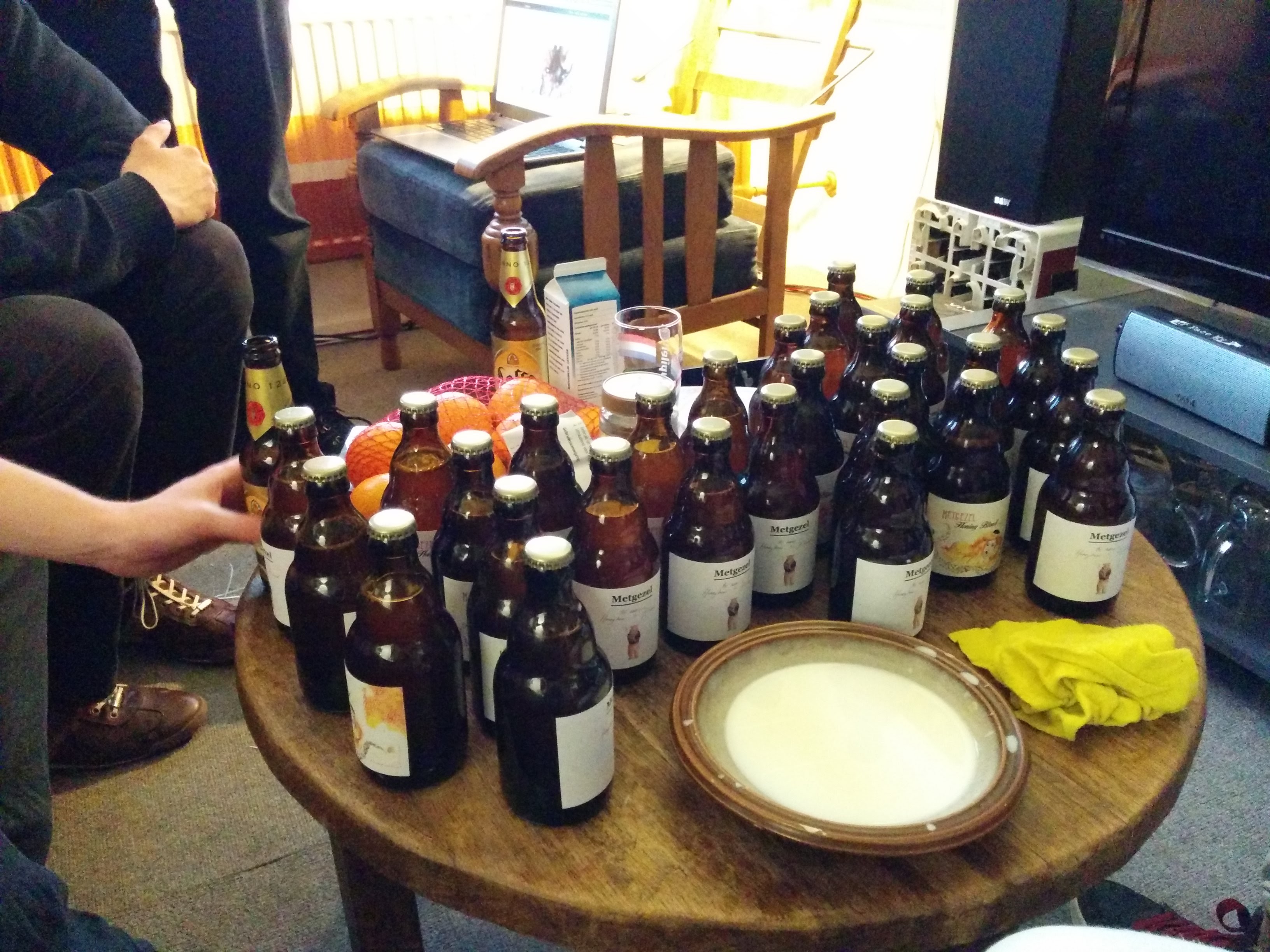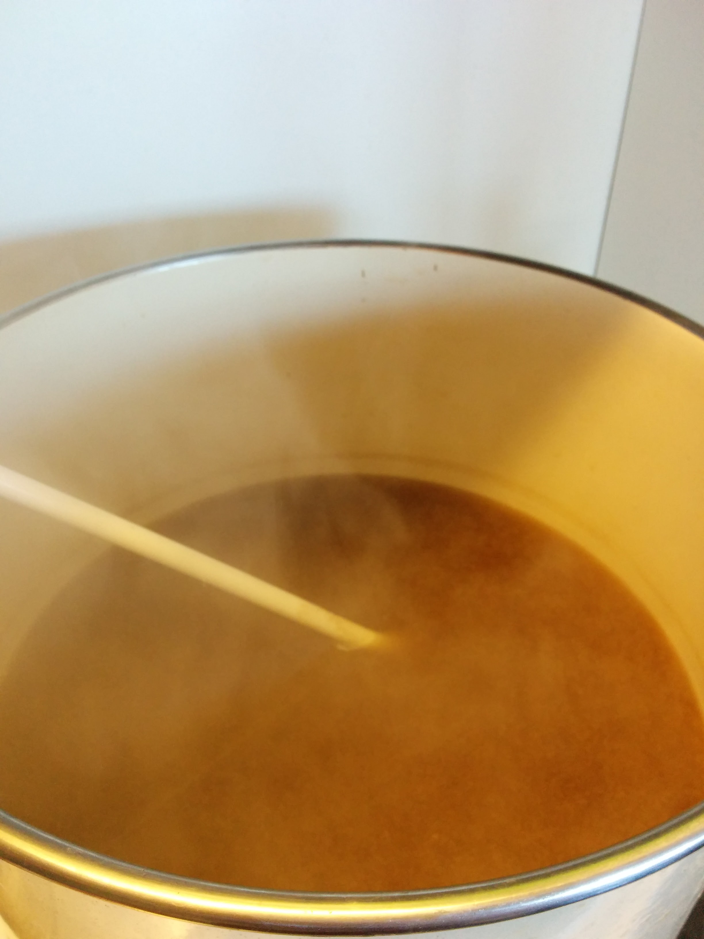 Een probleem wat we bij vorige bieren nog wel eens hadden is dat ze erg explosief waren, dat hebben we bij dit brouwsel eindelijk ook weten te voorkomen. Het bier is mooi goud van kleur, en heeft een prachtige schuimkraag.