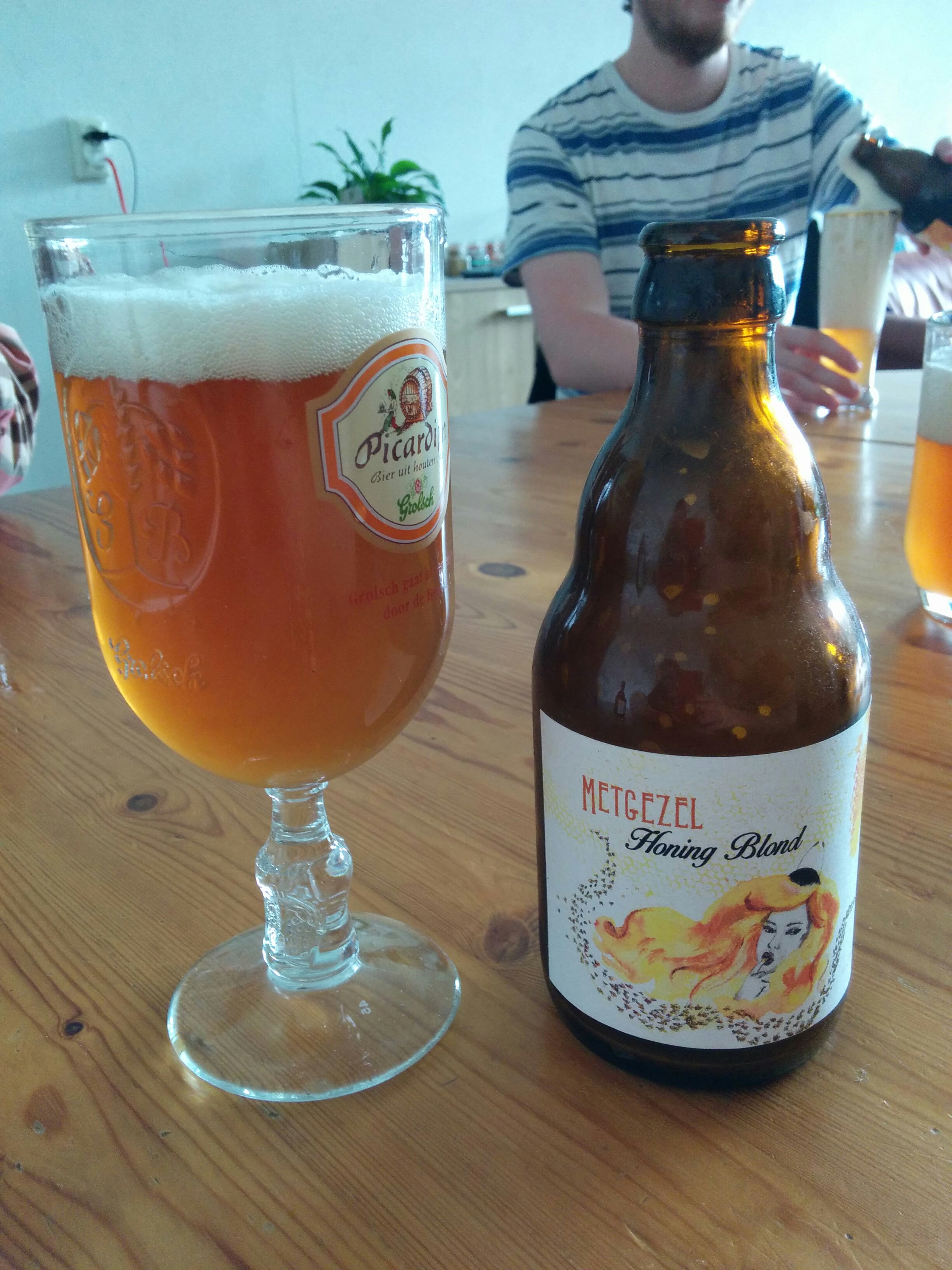 Een nieuw experiment: de honingblond! Voordat we begonnen te brouwen hebben we een breed marktonderzoek gedaan, en besloten tot wat voor honingsmaak we wilden komen. De honingsmaakĀ zou licht aanwezig zijn in het bier, en zeker niet te veel zoete smaak toevoegen. Dit hebben we bereikt door het vlak voor het bottelen toe te voegen. Het gist heeft veel van de suikers nog omgezet (in alcohol, CO2 en aroma), maar de honingsmaak is niet vergaan. Een biertje dat zeer prettig drinkt met een zachte smaak.